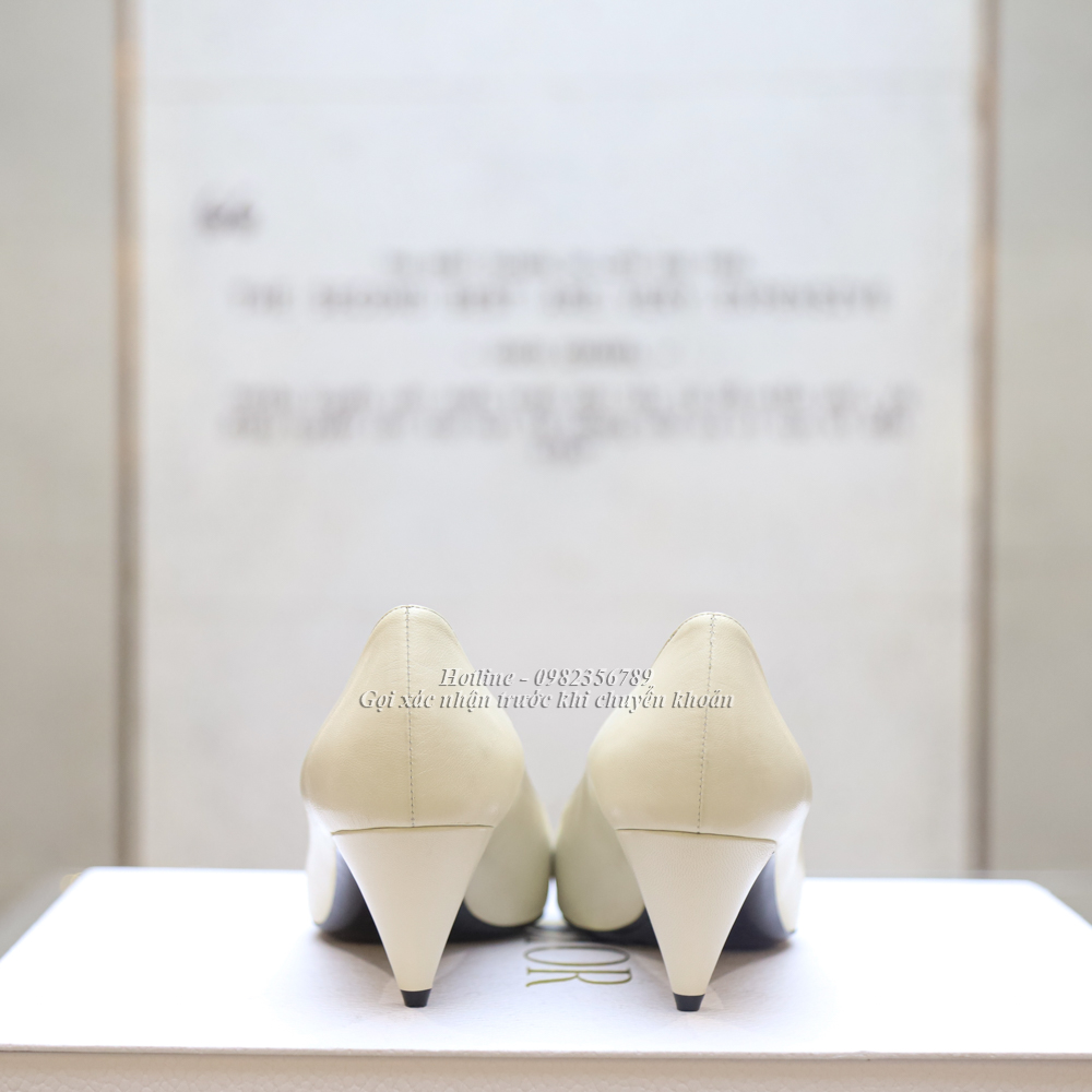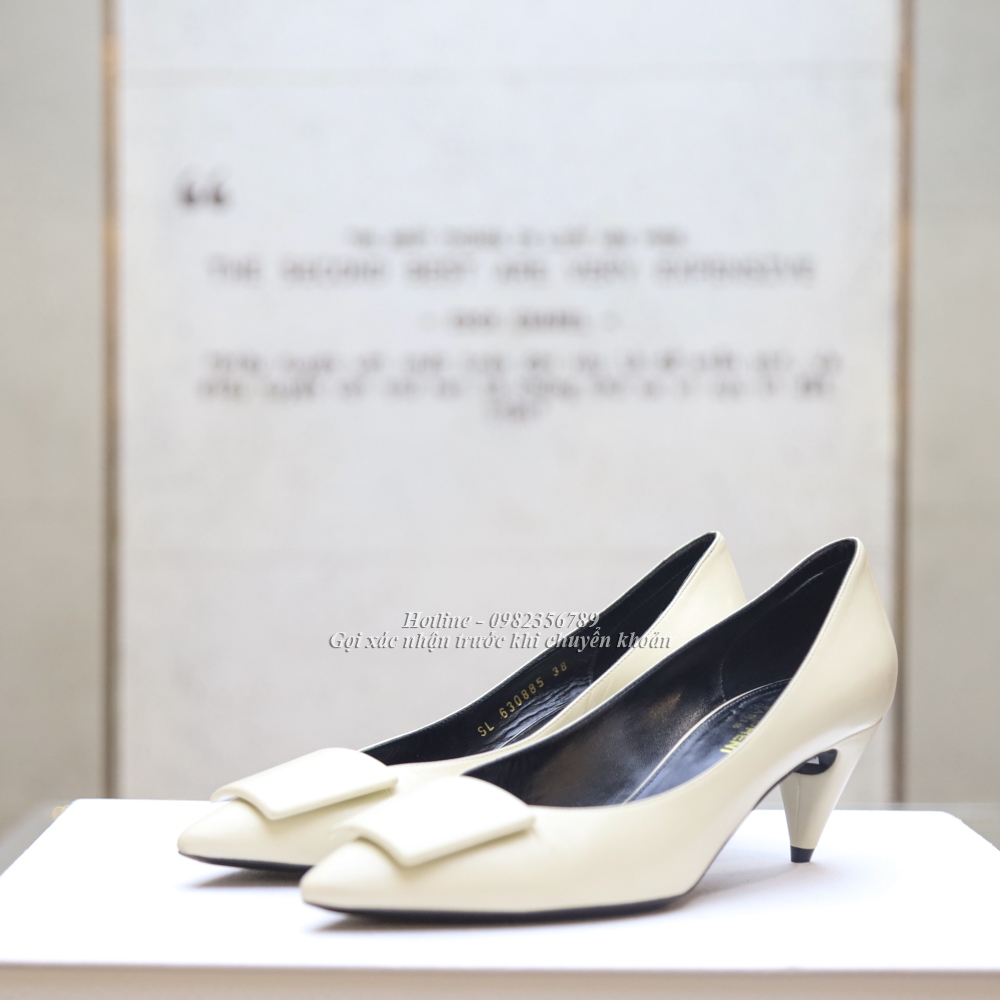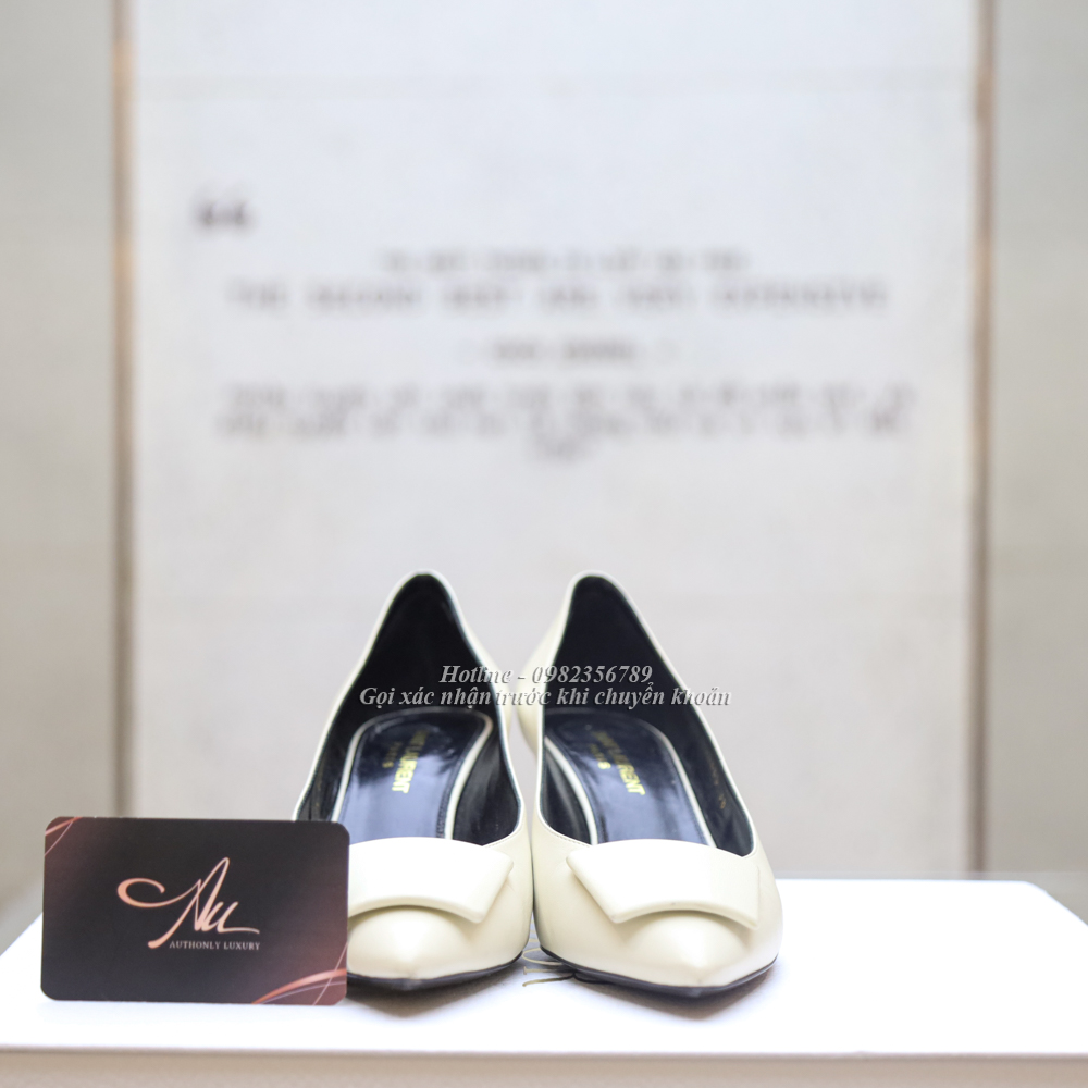 KG-Guốc Ysl màu trắng da trơn mũi nhọn tag vuông size 38