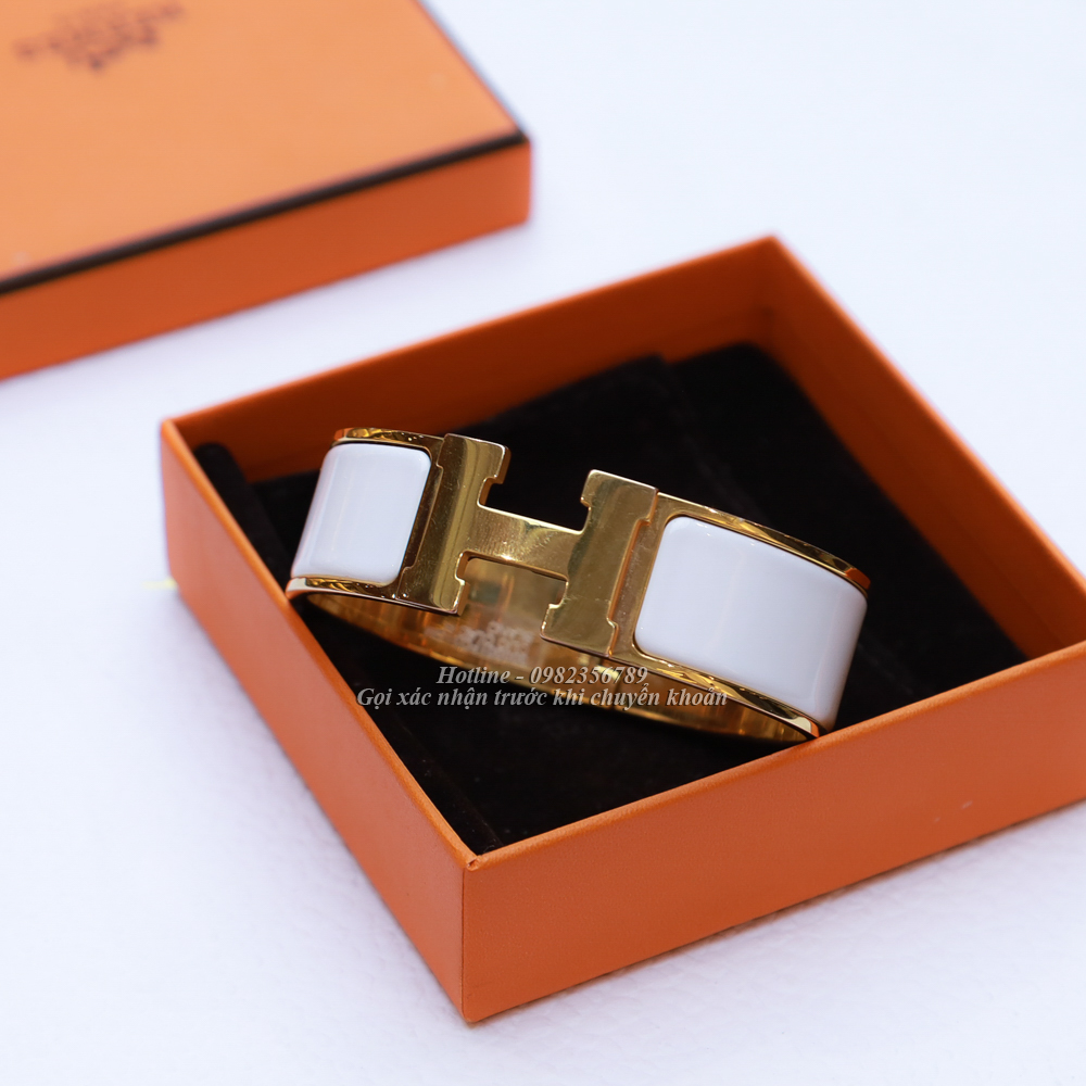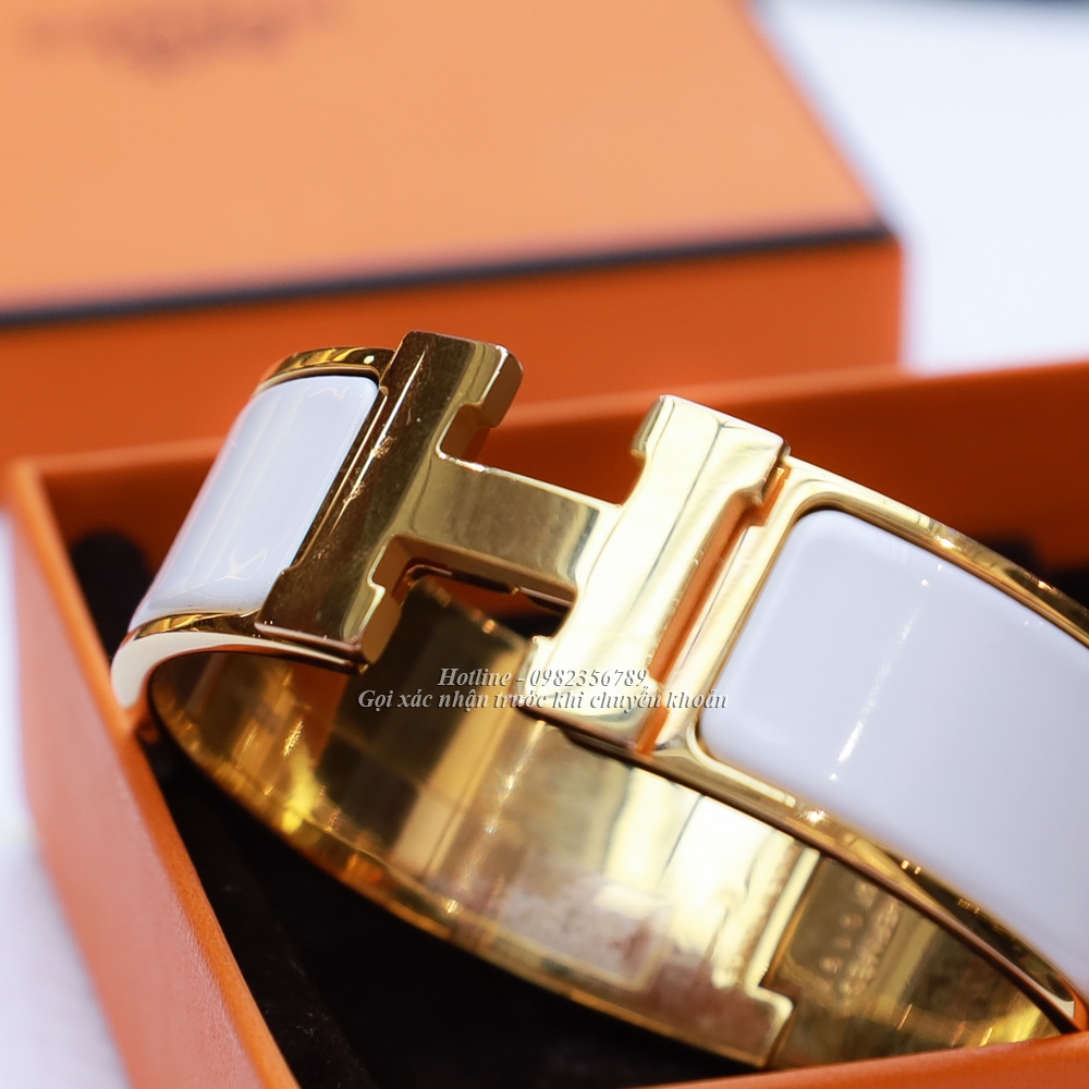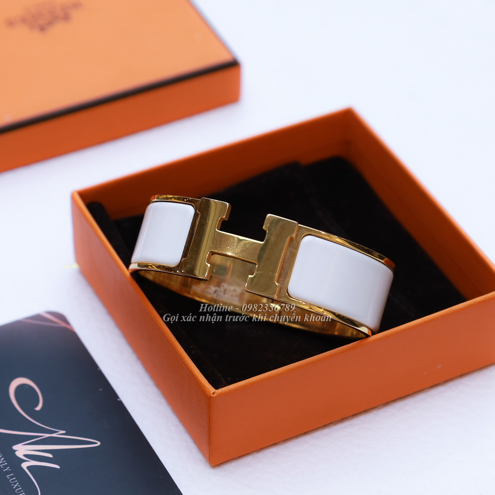 Vòng Hermes clic clac màu trắng viền vàng bản to